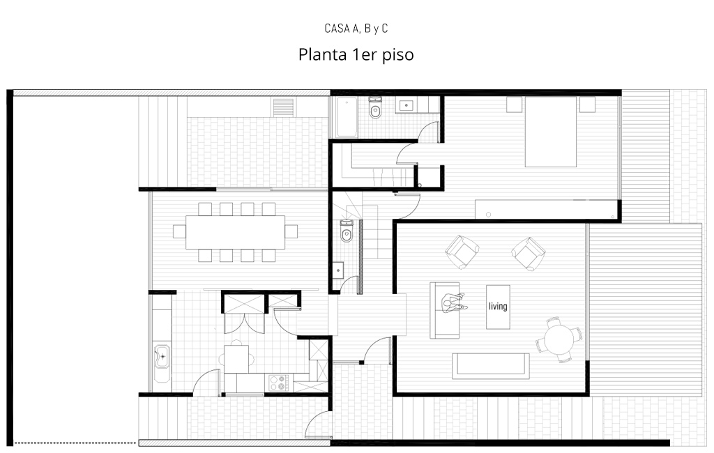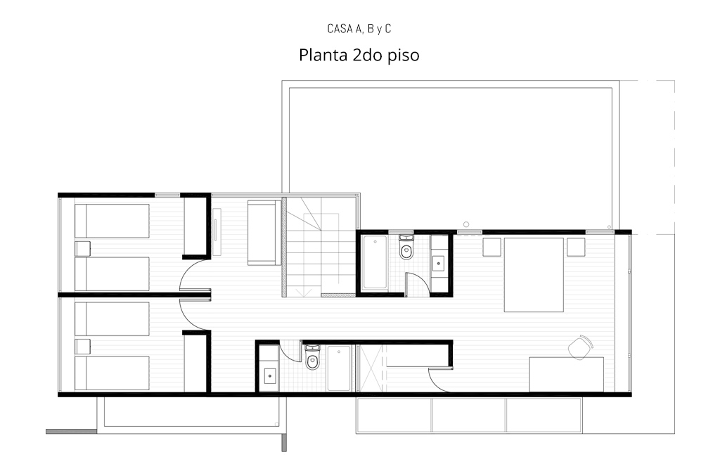 El proyecto consta de 3 casas mediterráneas de igual superficie, con vista suroriente que le permite recibir luz natural durante la mayor parte del día y disfrutar su extraordinario entorno permitido por la quebrada.